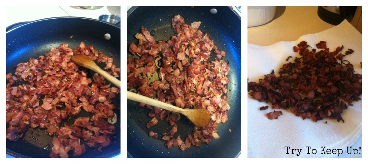Sauté shallots & bacon in a deep frying pan until bacon is crispy.